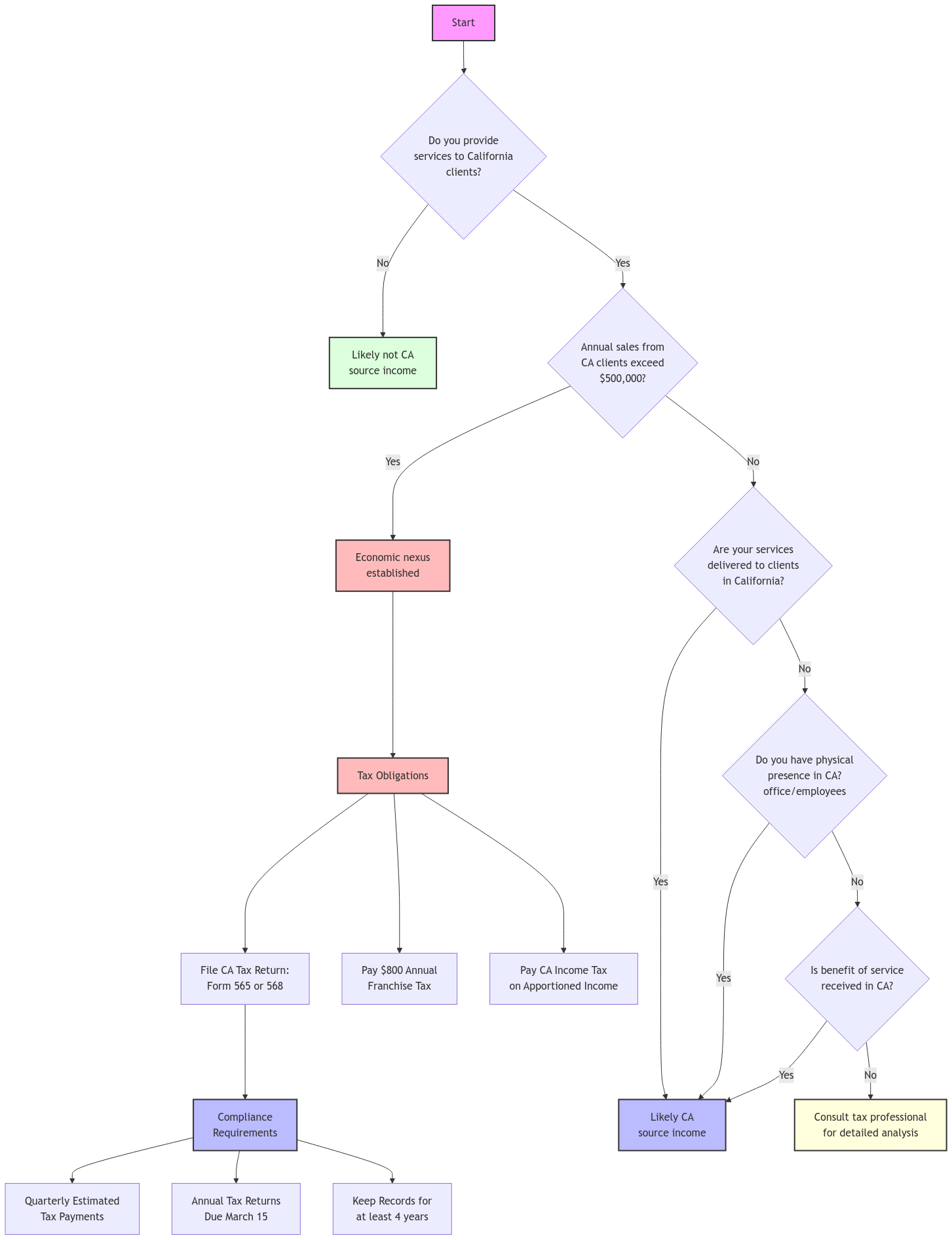 - California taxes income “sourced” in the state, even if your business is located elsewhere.