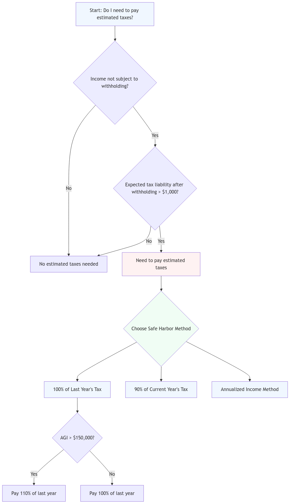 Think of the safe harbor rule as your safety net when it comes to estimated taxes. It’s a set of IRS guidelines that protect you from penalties if you underpay your estimated taxes. Basically, if you meet certain conditions, the IRS won’t penalize you even if you end up owing taxes when you file your return.