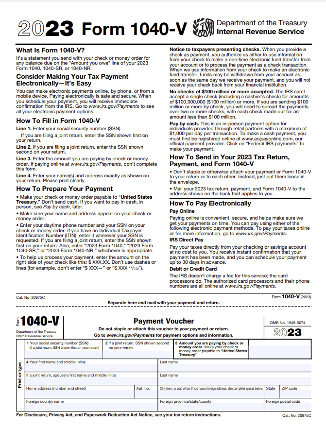 - Form 1040-V is not required for electronic payments.