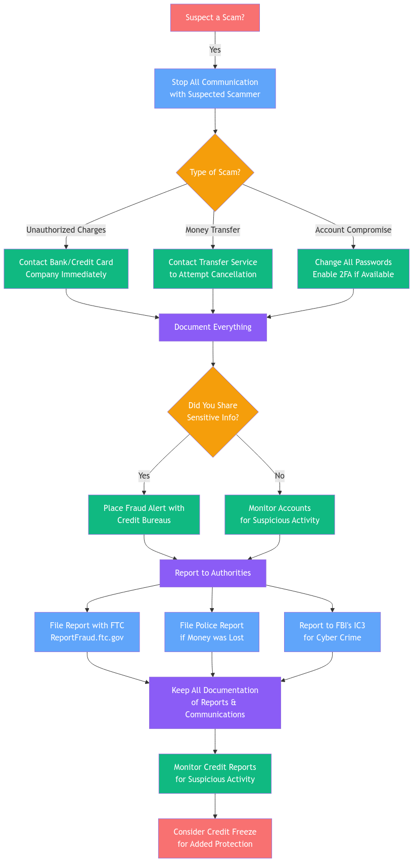 What should I do if I suspect a scam?
