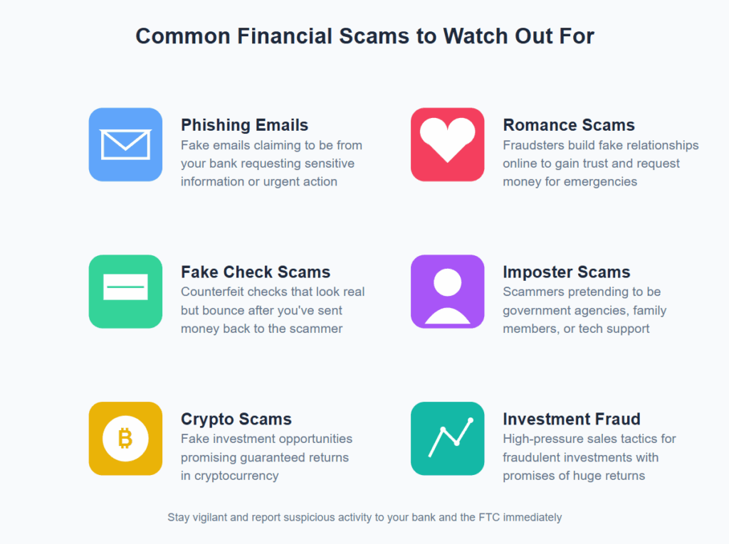 - Cryptocurrency Scams: Scammers may convince you to invest in or transfer funds to a fraudulent cryptocurrency account. Since cryptocurrency transactions are often irreversible, your bank may have limited ability to recover your funds. These scams might involve promises of guaranteed high returns or pressure to invest in a new, obscure cryptocurrency. The FBI’s Internet Crime Complaint Center (IC3) received over $2.57 billion in reported losses from cryptocurrency scams in 2022.