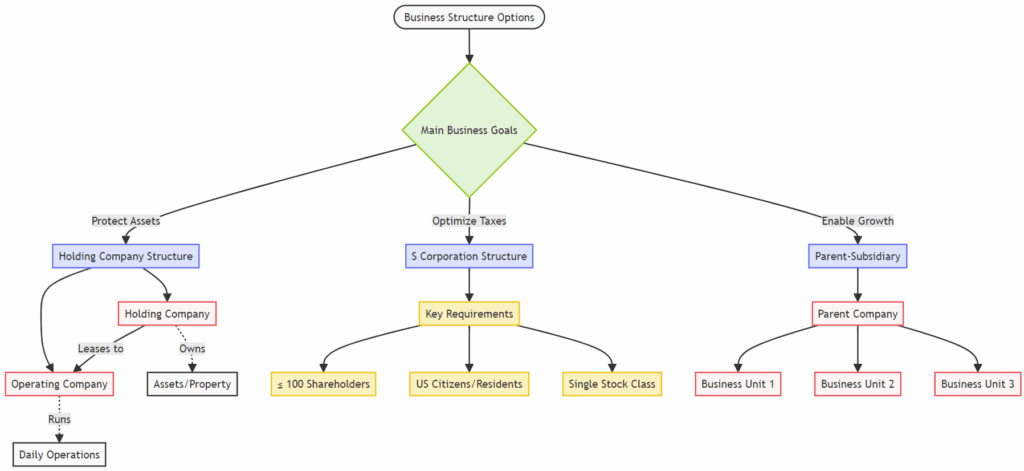 As your business evolves, adjusting its structure can open up new opportunities. Let’s delve into some common multi-entity structures and how they might benefit you.