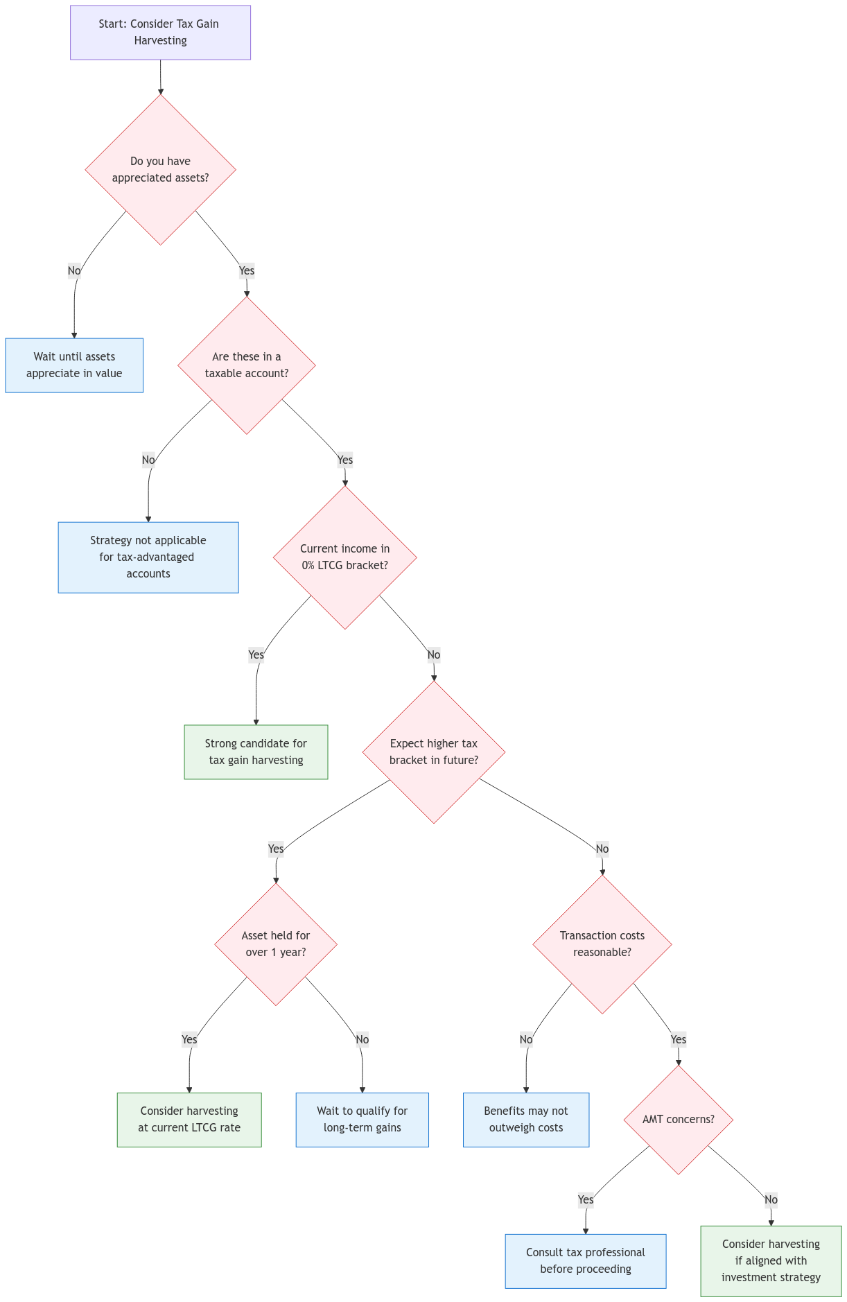 Consult a Professional for Large Transactions: We recommend consulting with a tax advisor before undertaking significant tax gain harvesting transactions, especially those involving substantial amounts or complex securities.